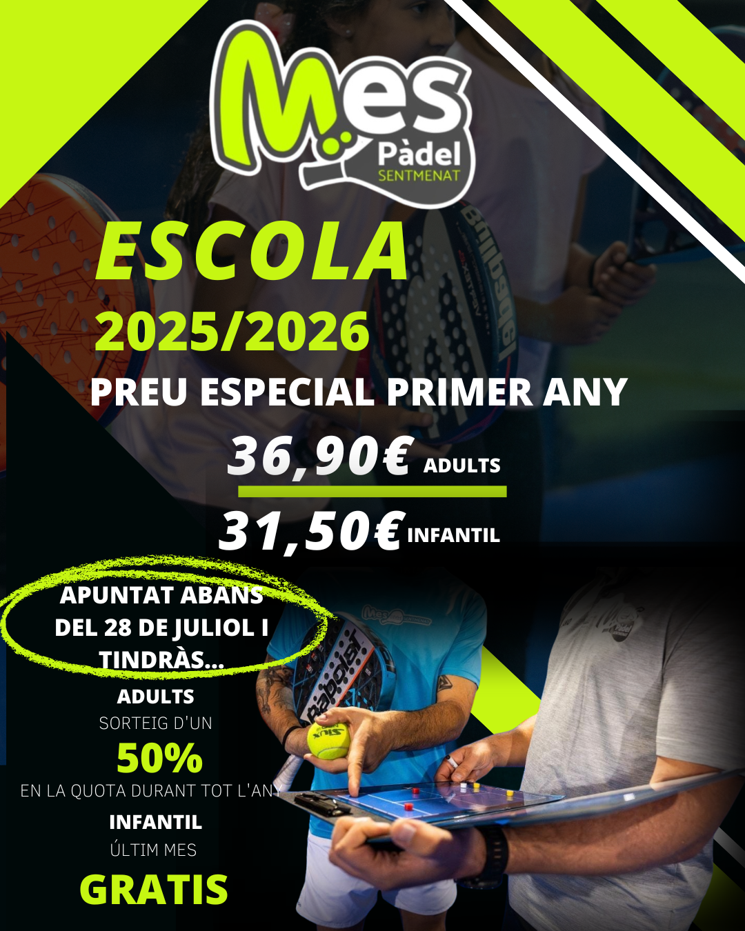 amb quota MES Pàdel 36,90€ mensuals (matrícula gratis)